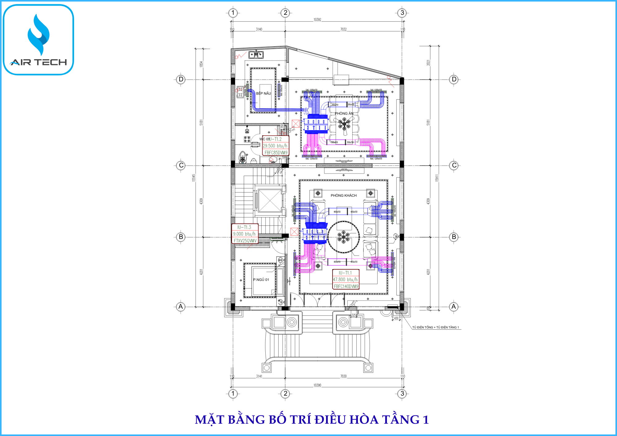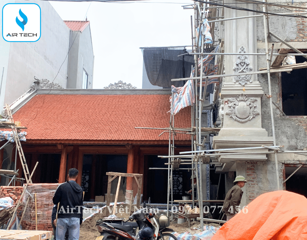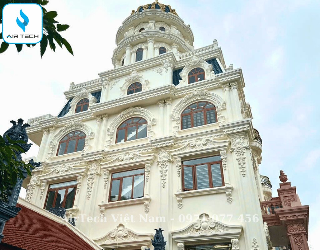 | Giải pháp từ AirTech | – Thiết kế hệ thống điều hòa cục bộ âm trần nối ống gió cho các không gian chính và treo tường cục bộ cho các không gian phụ ít sử dụng. – Tính toán công suất chi tiết cho từng phòng, giúp tối ưu hiệu suất làm lạnh và tiết kiệm điện năng, đồng thời giảm chi phí đầu tư ban đầu. – Thiết kế bản vẽ kỹ thuật đồng bộ gồm: đường ống đồng, ống gió, dây điều khiển,... đảm bảo phối hợp nhịp nhàng với các hạng mục khác trong từng giai đoạn thi công, từ phần thô đến hoàn thiện nội thất. |