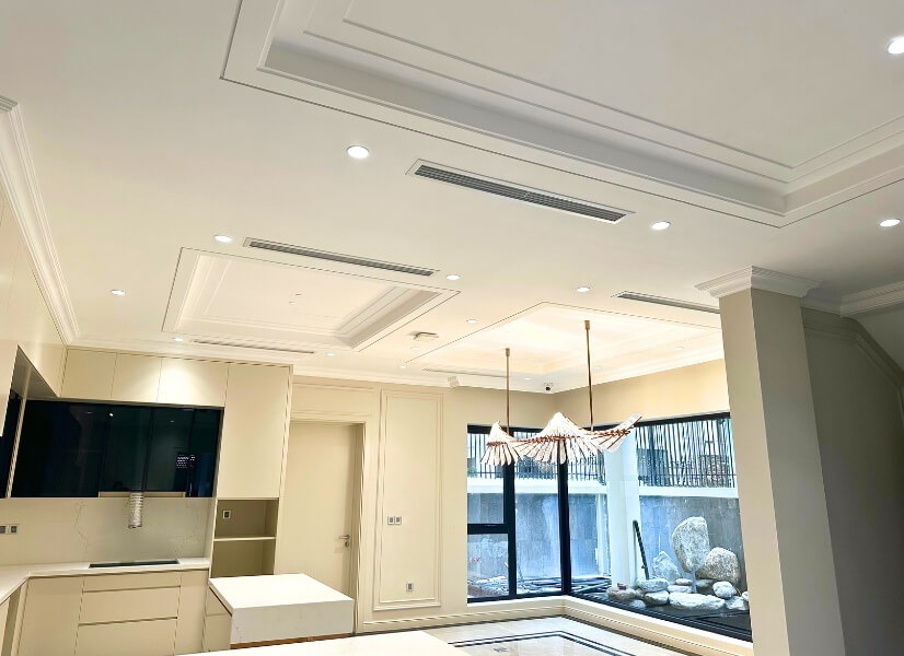 | - Thiết kế âm trần nối ống gió kết hợp cửa gió thẩm mỹ, đồng bộ với nội thất cao cấp |
