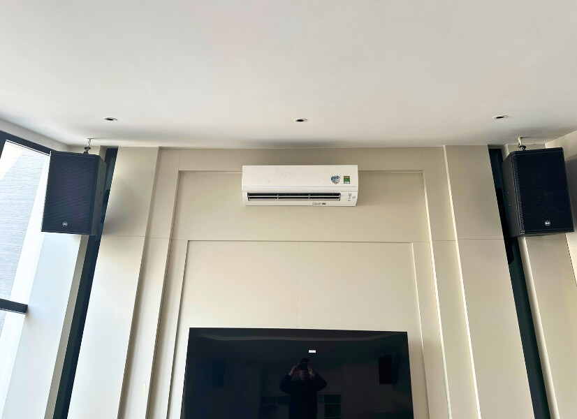 | Hệ thống điều hòa chính | Công trình được sử dụng hệ thống điều hòa Multi, dàn lạnh âm trần nối ống gió, kết hợp điều hòa cục bộ ống gió và treo tường. Toàn bộ thiết bị là điều hòa 2 chiều Inverter, vận hành êm ái và tiết kiệm điện năng. |