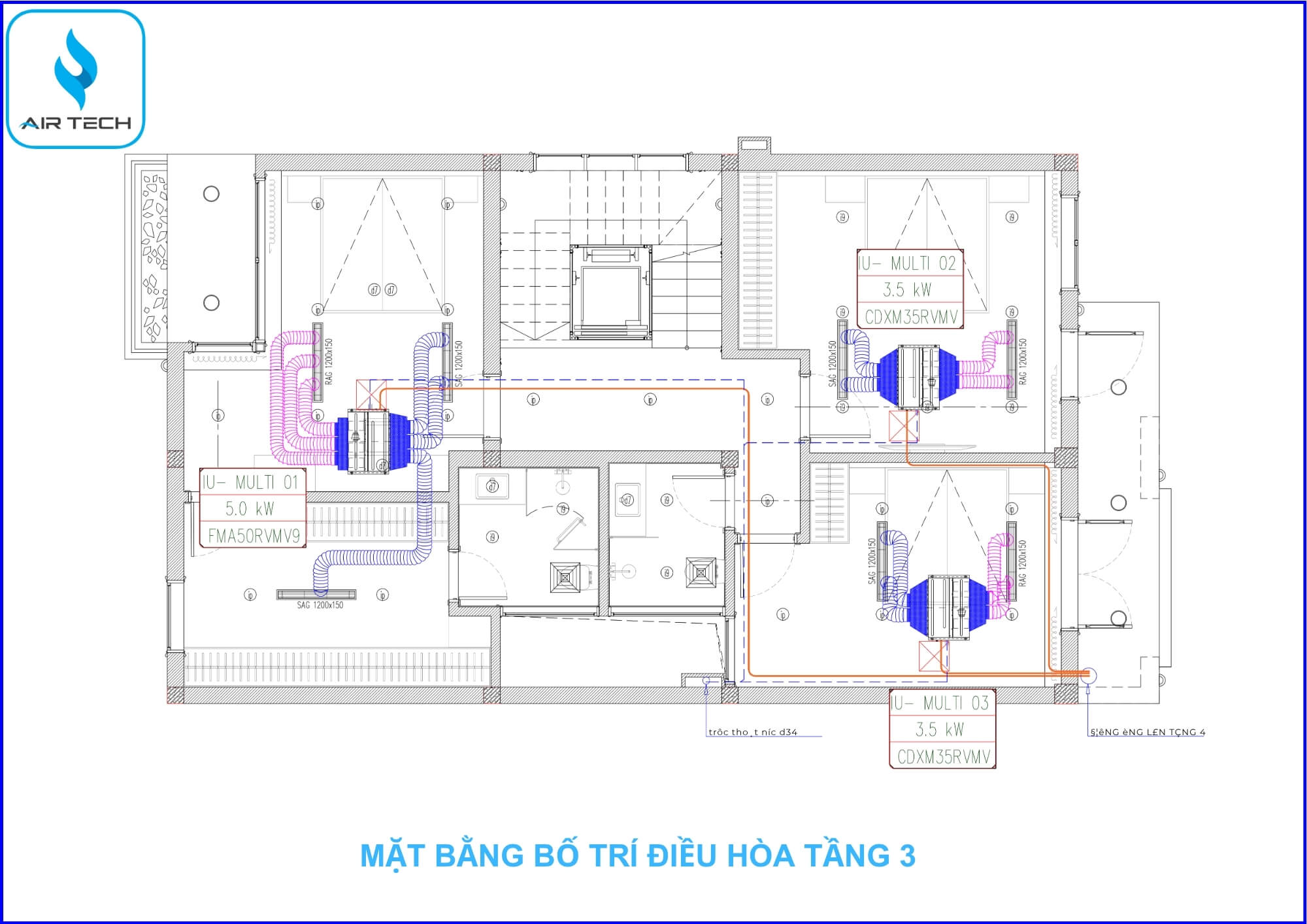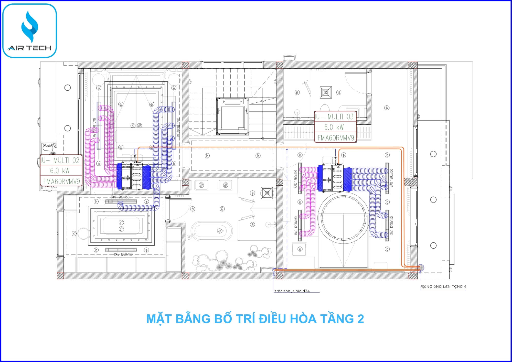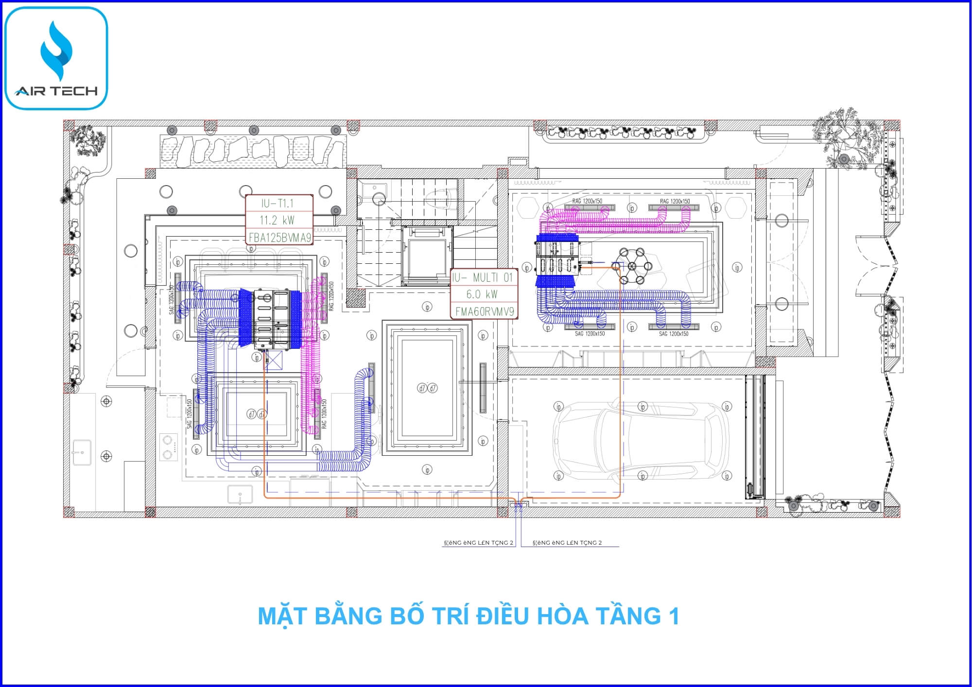 Bản vẽ kỹ thuật chi tiết hệ thống điều hòa & khí tươi biệt thự Việt Hưng do AirTech thiết kế và triển khai như sau:
