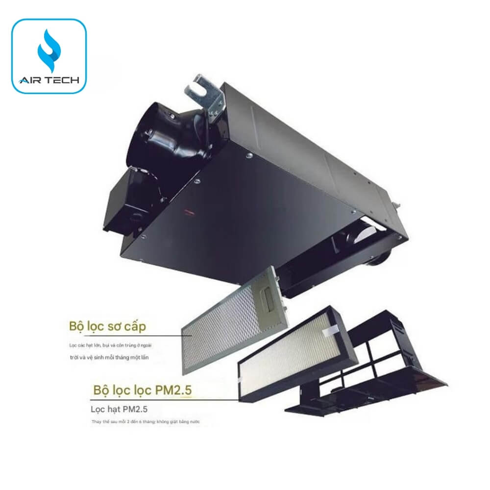 Sản phẩm được trang bị 2 lớp lọc gồm Pre-filter và HEPA-filter giúp loại bỏ bụi bẩn, phấn hoa, vi khuẩn, virus và đặc biệt là bụi mịn PM2.5 – tác nhân gây ảnh hưởng nghiêm trọng đến sức khỏe đường hô hấp. Nhờ hệ thống lọc này, không khí được cấp vào phòng luôn sạch, tươi mới, hạn chế tối đa nguy cơ dị ứng, hen suyễn và các bệnh hô hấp.